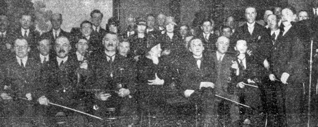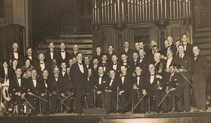 The Aberdeen Strathspey & Reel Society was established in 1928 to form and maintain orchestras for promoting the practice and performance of Scottish music, with aims to encourage and advance interest in Scottish music and preserve the playing of it. The following photograph show the members in April 1928: