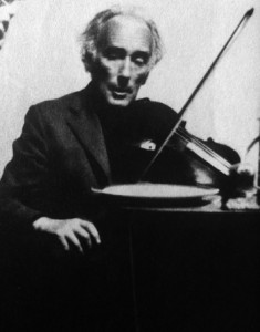 Dolmetsch’s basic tone on the violin was of a more fiery colouring and a less refined texture than we generally associate with this most versatile of instruments (almost as if 0.01 per cent of bagpipe chanter had got blended in). He played more into the string, and with a more slowly moving bow, than is general nowadays. His accentuation was almost entirely of the crisp variety (sharp attack, often preceded by silence of articulation) rather than of the massive variety (by arm- weight and pressure). His cantabile was exquisitely sustained; but the rest of his playing was highly articulated. Not only were the expressive silences numerous; notes not separated by silences were kept articulated by an incisive little bite of the bow-hair on (not off) the string. The result was piquant and cleanly-etched; it combined intoxicating lightness with solid strength and virility. It was at once vital and relaxed. [Robert Donington, ‘The Interpretation of Early Music’ (London, 1963), p. 465]