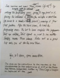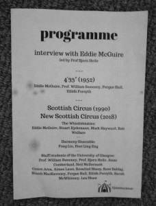 The programme also included a performance of John Cage’s seminal 4′ 33” of 1952 by Eddie McGuire (flute), Professor William Sweeney (clarinet), Fergus Hall (violin) and Eilidh Forsyth (piano) that can be heard here: