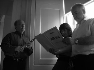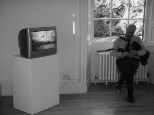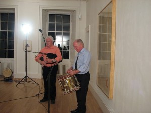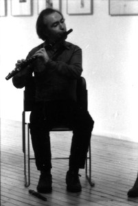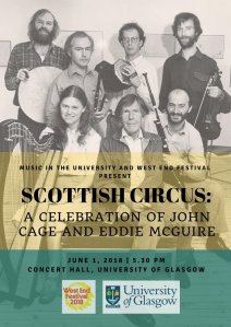 A reception had been arranged at the Fruitmarket gallery where an exhibition of Cage;s spidery graphics remains on show after the festival – by the gallery director Mark Francis. Francis contacted Edward McGuire of the Whistlebinkies, an admirer of Cage’s avant-garde work, to provide some entertainment.