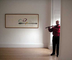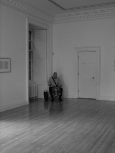 And wide-eyed, ears straining, we remained, as more haunting phrases crept from all around – from the upper galleries, from distant rooms and hidden corners. John Cage’s Scottish Circus, he devised for the Whistlebinkies, an improvisation of incredible beauty and delicacy. Upstairs, hanging in sombre splendour, Alexander Reid stares from his ornate frame, out over the work of his friend Van Gough. There’s a Hornel on one wall, Van Gough’s peasants on another. None of this seems strange. It is, after all, art, and music, in context.