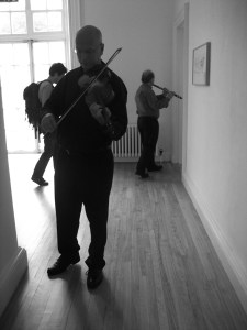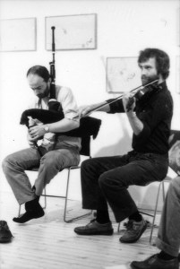 Hamish Henderson said he’d heard nothing like it since wandering into a pub in the Highlands at one of the early folk festivals in the ‘sixties and hearing the mingling of several fiddlers playing different tunes in the hubbub.